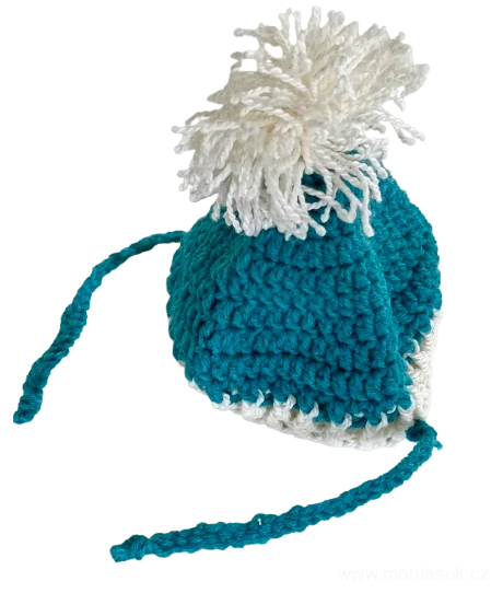 Ručně háčkovaná zimní čepička pro psa s bambulkou.