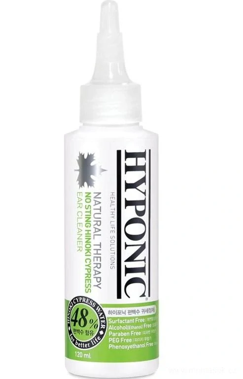 HYPONIC No Sting Hinoki Cypress je přírodní čistič uší, který účinně odstraňuje nečistoty, přebytečný maz a osvěžuje zvukovod. Díky svému složení je ideální i pro psy s citlivýma ušima, protože nezpůsobuje podráždění ani nepříjemné pocity.