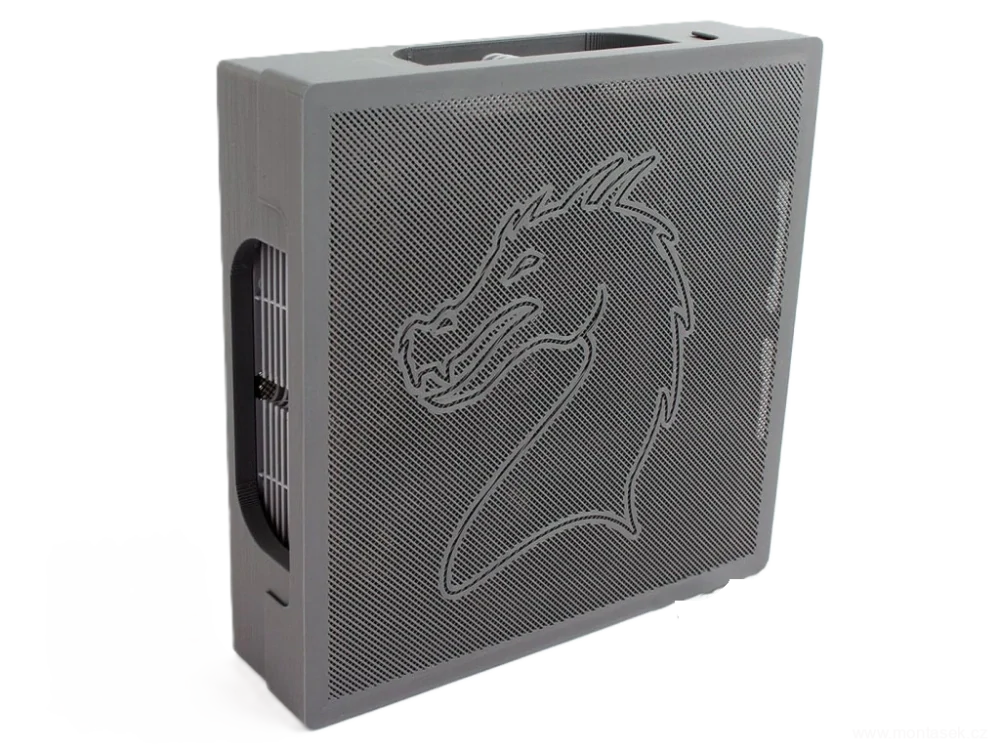 Stylový uzavíratelný zásobník s motivem draka udrží herní podložky přehledně pohromadě při hře Karak i Carcassonne.