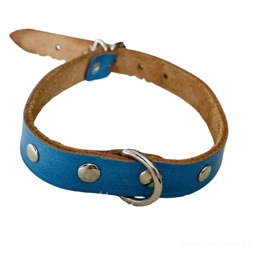 - Modrý kožený obojek pro psa 12mm 35cm