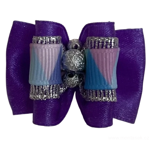 Fialová luxusní mašlička, precizní ruční výroba, pevná, z kvalitní stuhy, na silikonové gumičce. Mašličky jsou vhodné pro všechny dlouhosrsté psy a mají dlouhou životnost.