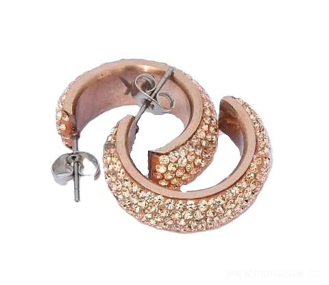 Náušnice ve tvaru polokruhů, vykládané medovými kamínky Preciosa.