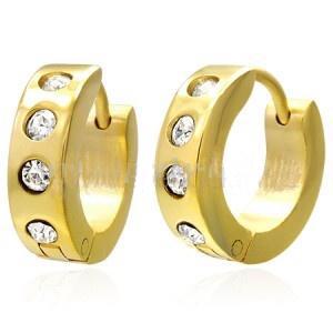 Náušnice chirurgická ocel, kruhy zlaté barvy zdobené čirými kamínky