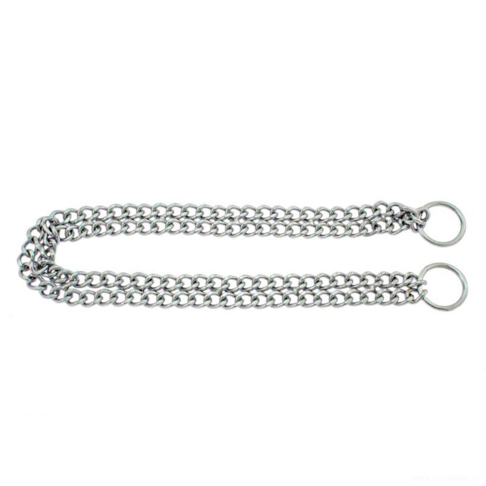 Dvouřadý ocelový obojek, který je možné používat jako klasický obojek, nebo stahovací, když potřebujeme aby pes lépe reagoval na naše povely. Obojek vhodný pro střední a velká plemena. Obojek spojen svařováním, vyroben z pochromované ocele. Obojek se provlékne zkrz očko a navlékne psovi na krk.