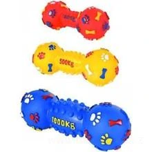 Klasická pískací hračka ve tvaru činky, pejskovi se dobře drží díky svému tvaru a rád si s ní hraje díky jejímu pískavému zvuku.