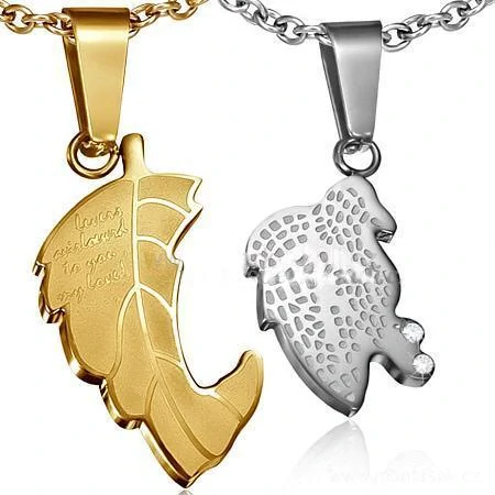 Přívěšek z chirurgické oceli pro páry, lístky ve zlaté a stříbrné barvě.