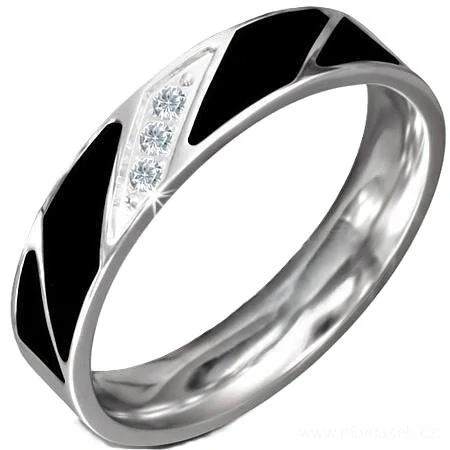 Prsten zdobený kamínky a černými ploškami