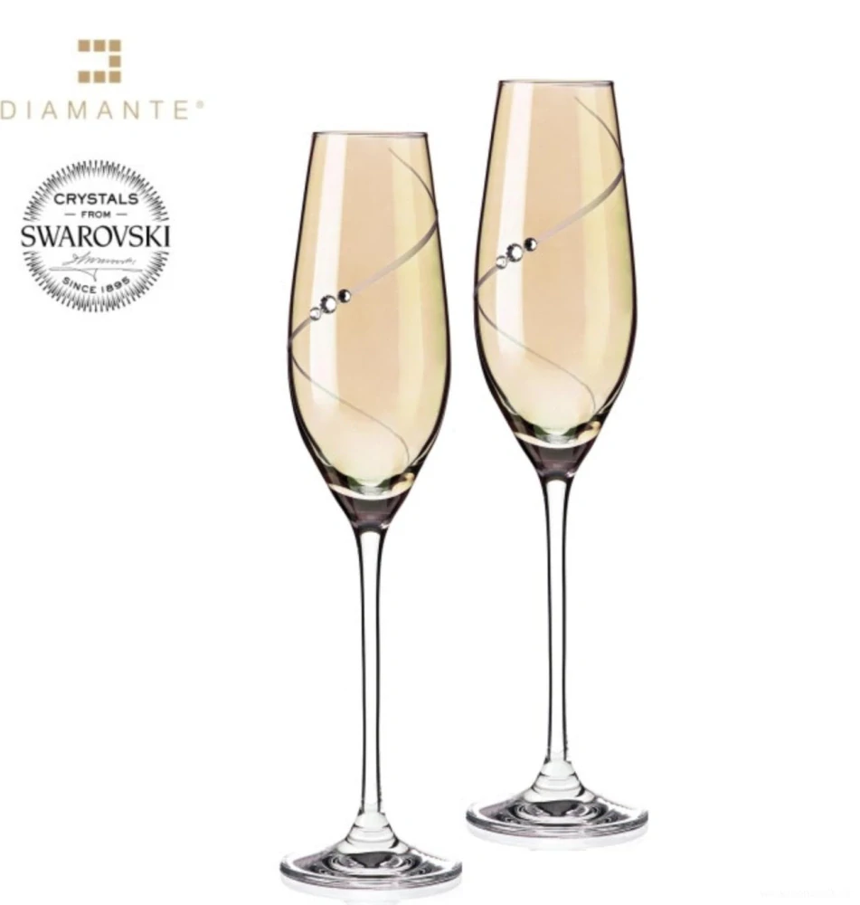 Skleničky na šampaňské flétny s krystaly zlaté barvy