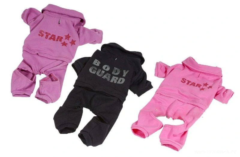 Bavlněný růžový overal pro malého psa, tepláková souprava bez kapuce s nápisem. Vhodná do chladného počasí nebo třeba po koupeli pejska.
