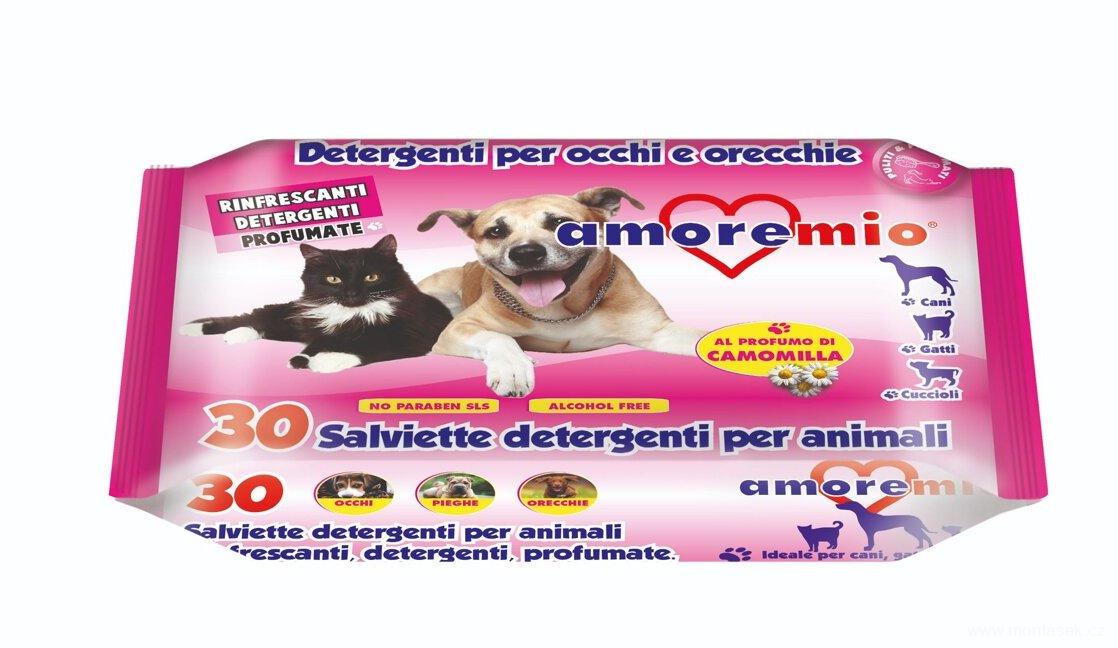 Hygienické ubrousky pro psy a kočky AMOREMIO kapesní vlhčené čistící ubrousky, extrakt z heřmánku, 30 ks