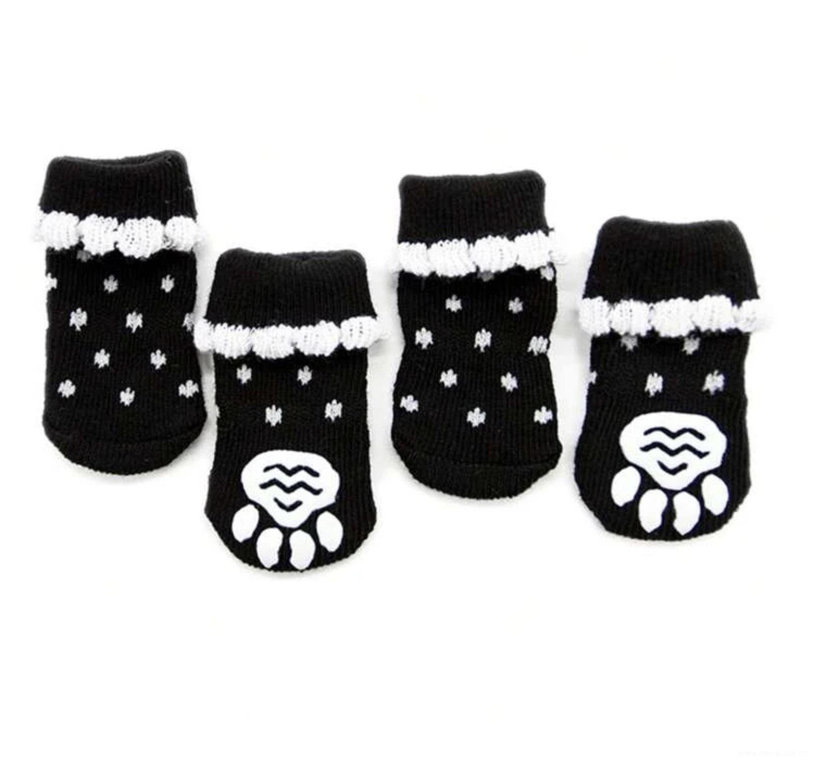 Praktické ponožky pro psy, vhodné pro chladné období, nebo při zranění tlapky. Vhodné také pro zvířata žijící na kluzkých plovoucích podlahách. Skvělé po ošetření tlapek krémem, aby se zamezilo olizování krému.